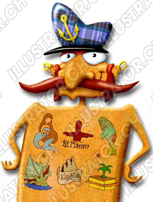Tags: Figur Mann Tattoo Schnauz Kapitän Seemann Charakterkopf KörperBilderbuchfigur