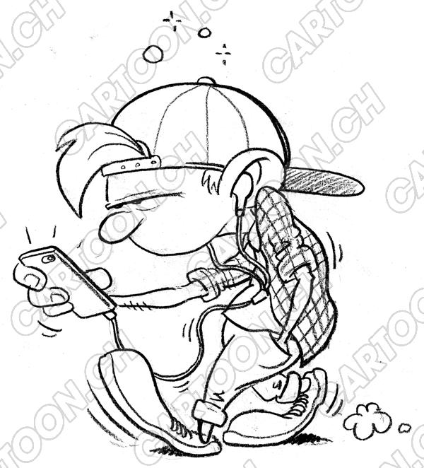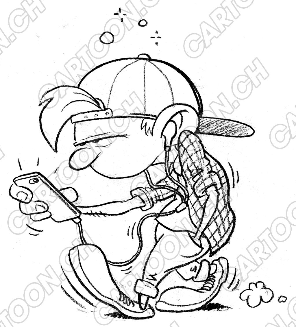 Tags: Character Figur schwarzweiss Laufen Zeichnung Junge Bleistift Kappe Handy Natel Mobile cool lässig Dachkappe Cap Baseballmütze Teenager Jung Bub Typ Schlendern einfach