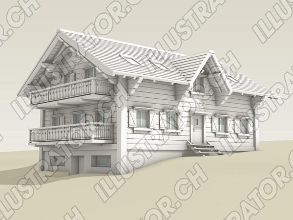 Tags: 3D Haus Gebäude technisch Visualisierung Chalet Holz Holzhaus CGI