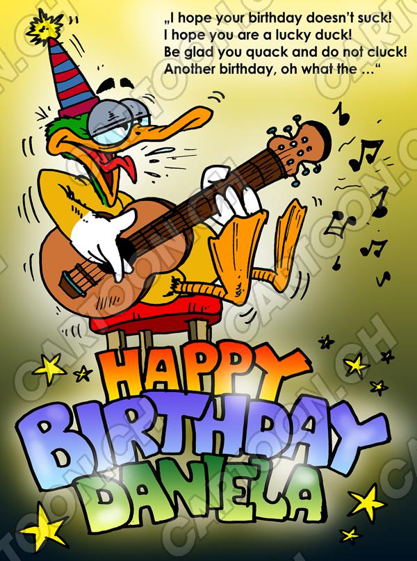 Tags: Happy Birthday Geburtstag Karte Geburtstagskarte Ente Duck Gitarre Musik Lied Noten Singen Birthday Anniversaire
