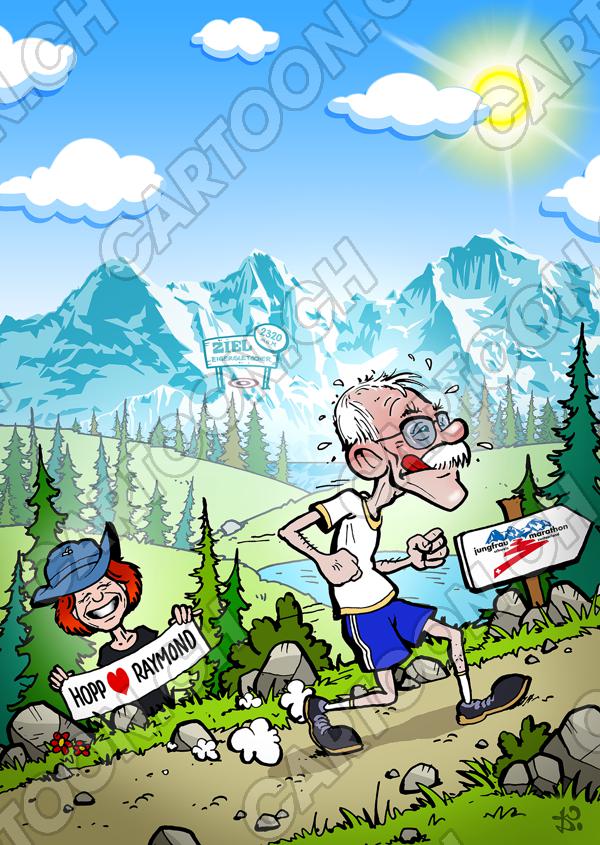 Tags: Geburtstag Karikatur Geschenk Jubiläum ab Foto Rennen Laufen Marathon Jungfrau Sport