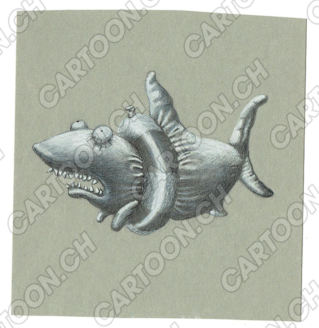Tags: Tier Fisch Meer schwimmen eng Rettungsring Schwimmring Hai Wassersport animalisch absurd Plastik Haifisch unpassend der weisse Hai Tiefe