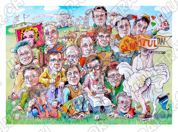 Tags: Geburtstag Karikatur Geschenk farbig Gruppe Golf Gruppenkarikatur Gruppenbild Fachbild