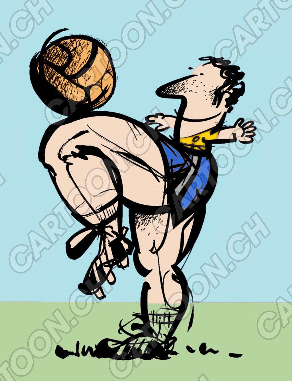 Tags: Postkarte Fussball farbig Ball Cover Tusche koloriert Fussballer Oberschenkel Jonglieren