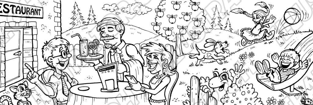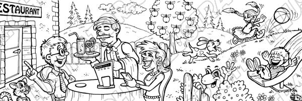 Tags: Kinder Kinderbuch Ausmalen Malen Kinderheft Suchbild Restaurant Ball Ober Hund Frosch Spielen